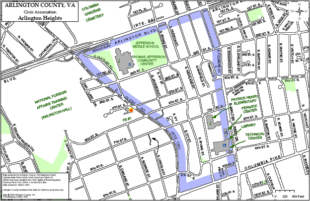 The name Arlington Heights has been used since the first half of the 19th Century, when it designated a large area extending from the current site of the Custis-Lee Mansion, westward and southward. Civil War maps clearly show this area. Maps at the turn of the century, however, show establishment of smaller neighborhoods that once were part of the larger area known as Arlington Heights. As each of these areas was carved out and established, such as Barcroft, Alcova Heights and Clarendon, our neighborhood remained as the only area still using the Arlington Heights name. More information is available in the Virginia Room at Arlington County's Central Library.